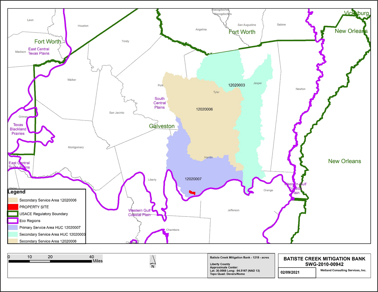 Batiste Creek Mitigation Bank provides clients the needed mitigation outline in order to receive their permits quickly and efficiently. We provide cost effective compensatory mitigation for impacted wetlands in the Galveston USACE Districts.
